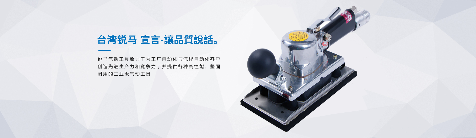 銳馬氣動(dòng)工具廠家是臺(tái)灣專業(yè)制造氣動(dòng)工具廠"筌誠(chéng)機(jī)械工業(yè)",30多年來(lái)致力于氣動(dòng)/電動(dòng)工具領(lǐng)域之研發(fā),生產(chǎn)和銷(xiāo)售,努力提升本身產(chǎn)品價(jià)值,在臺(tái)灣氣動(dòng)工具制造領(lǐng)域始終處于領(lǐng)先地位,并成功銷(xiāo)往國(guó)際市場(chǎng)。